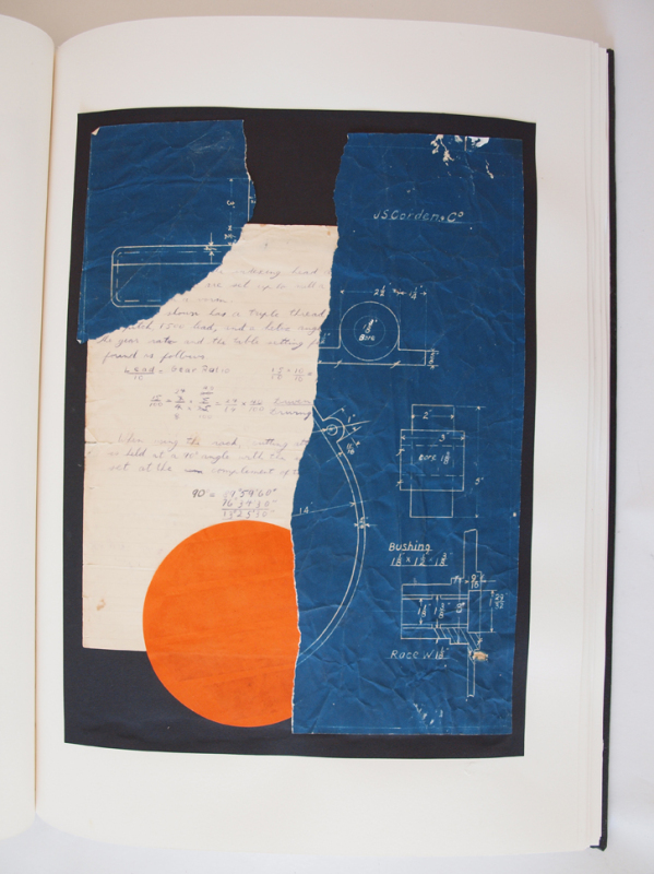 Blue Print for a Crankless Engine 2019. Hand bound book, 20 images, 23 pages. Collage on paper 49.2 x 35,2 x 2cm